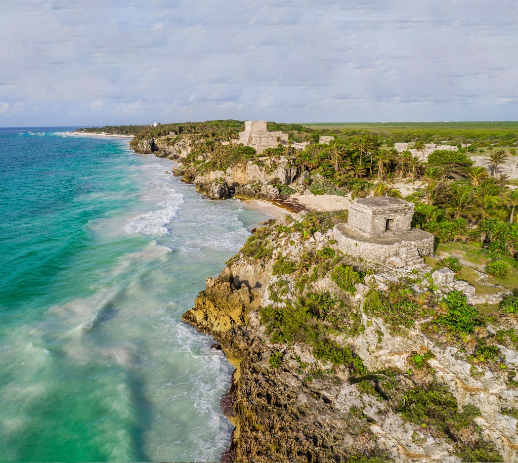 Caribbean Destinations: Cancun , Cozumel , Riviera Maya , the Yucatan Peninsula Framed by the Yucatan Peninsula, this area is the gateway to the Mayan world and the white-sand beach resorts and turquoise waters of the Caribbean Sea, home of the largest coral reef in the Americas. Mayan Legacy, Great Eco-Parks, Underwater Adventure, and Fun Water Sports are some of the characteristics.